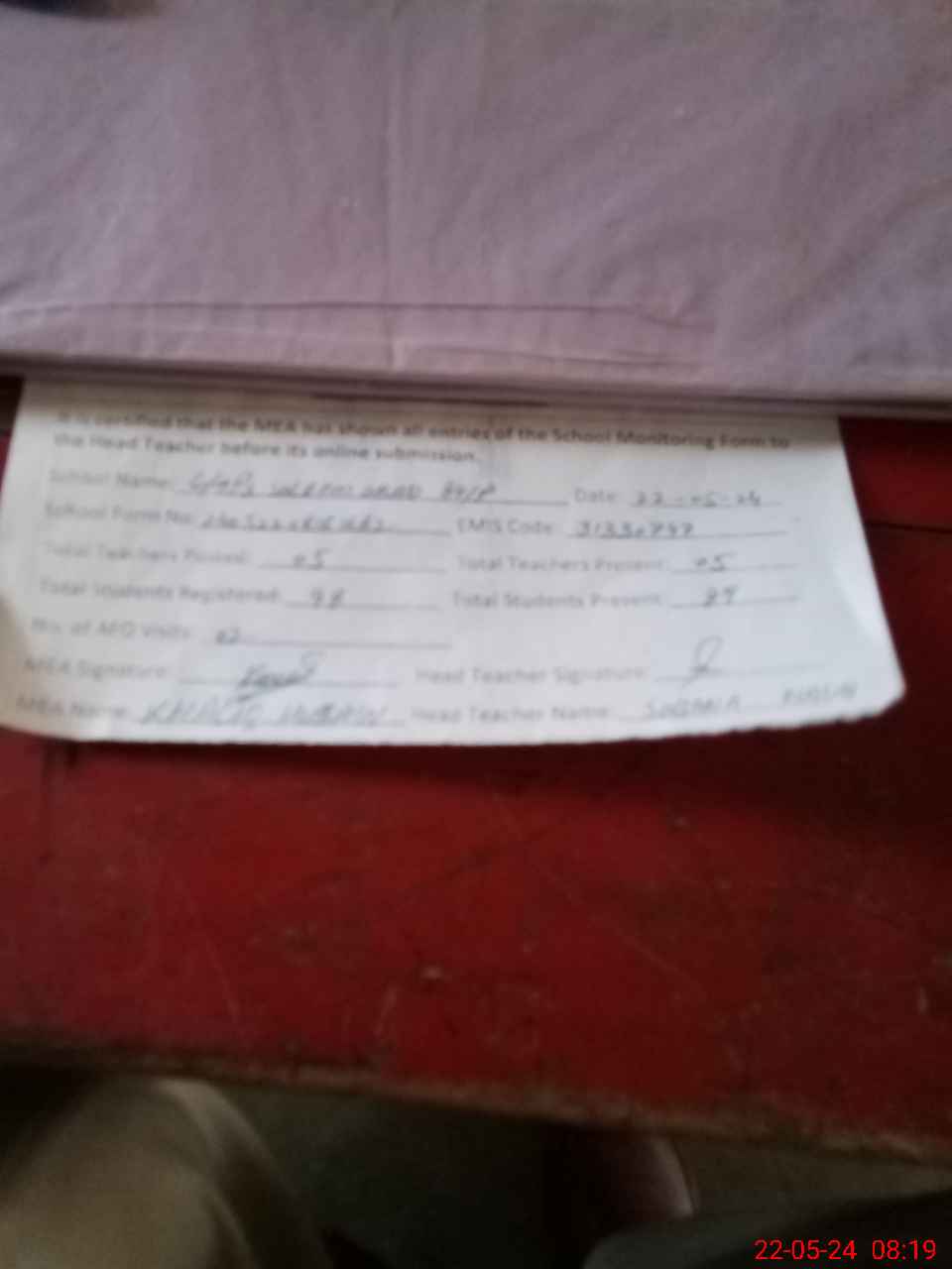 | Attendance Register | Head Teacher | MEA with School | Visit Proof |