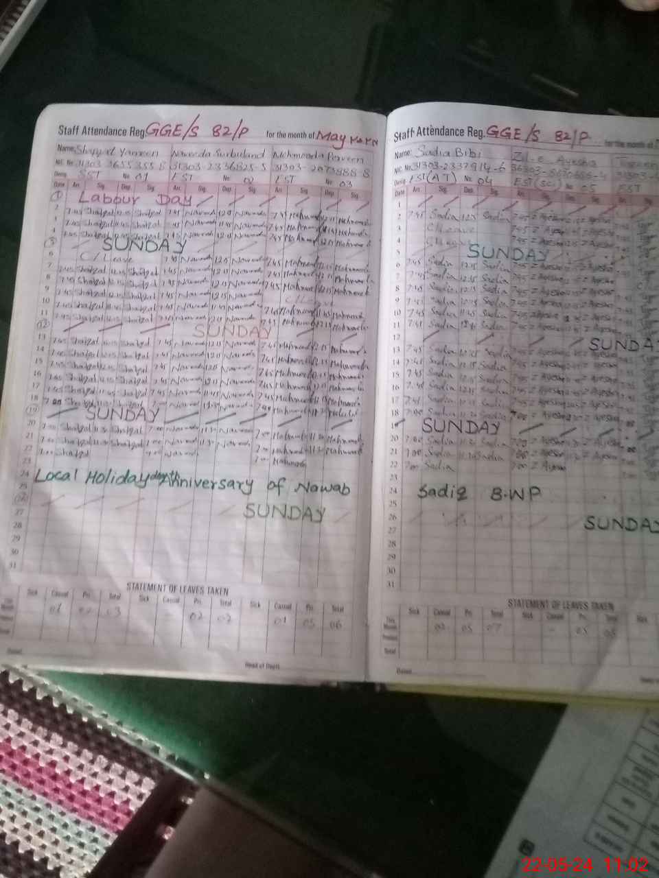 | CNIC | Full Name | Designation | R/C | Absence During Last Calender Month |