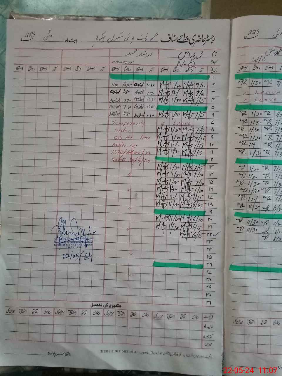 | Monitoring Date: 22-05-2024 | Start Time: 22-05-2024 10:20 AM | End Time: 22-05-2024 11:26 AM | Name of MEA: Sh**** Mu**** Ta**** | |