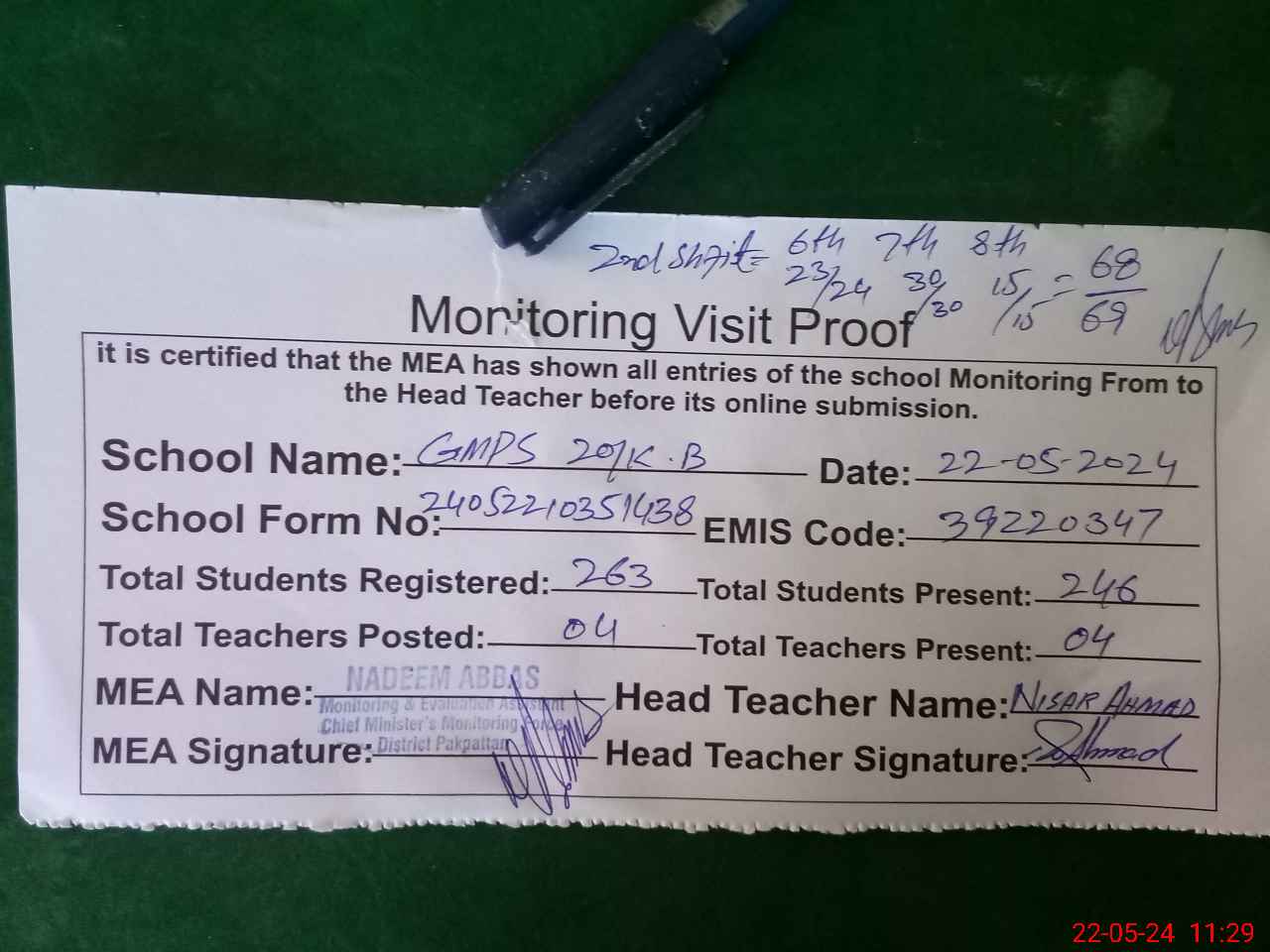 | EMIS Code: 39220347 | Name of School: GMPS CHAK NO. 20 KB | |||