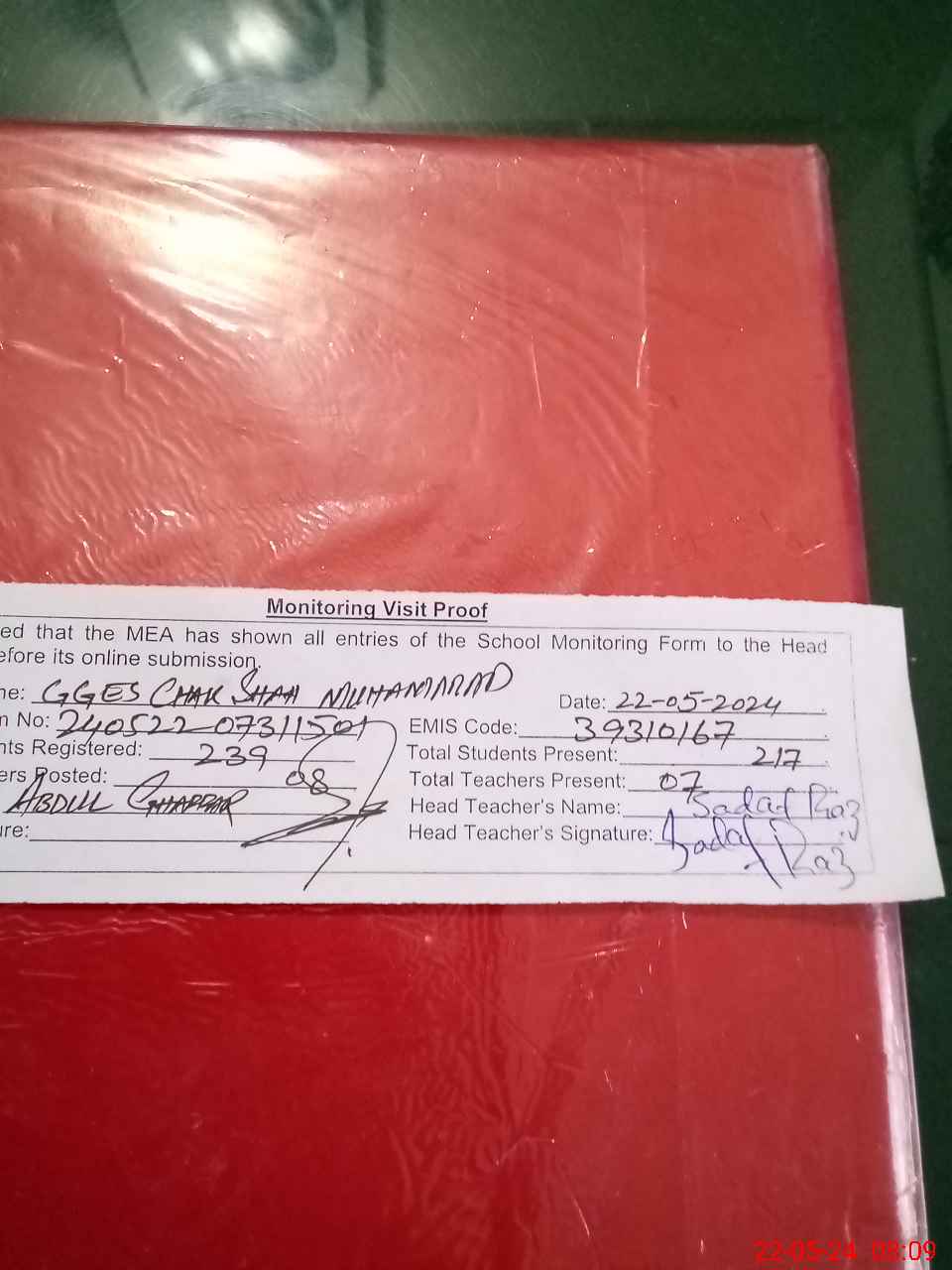 | EMIS Code: 39310167 | Name of School: GGHS CHAK SHAH MUHAMMAD | |||