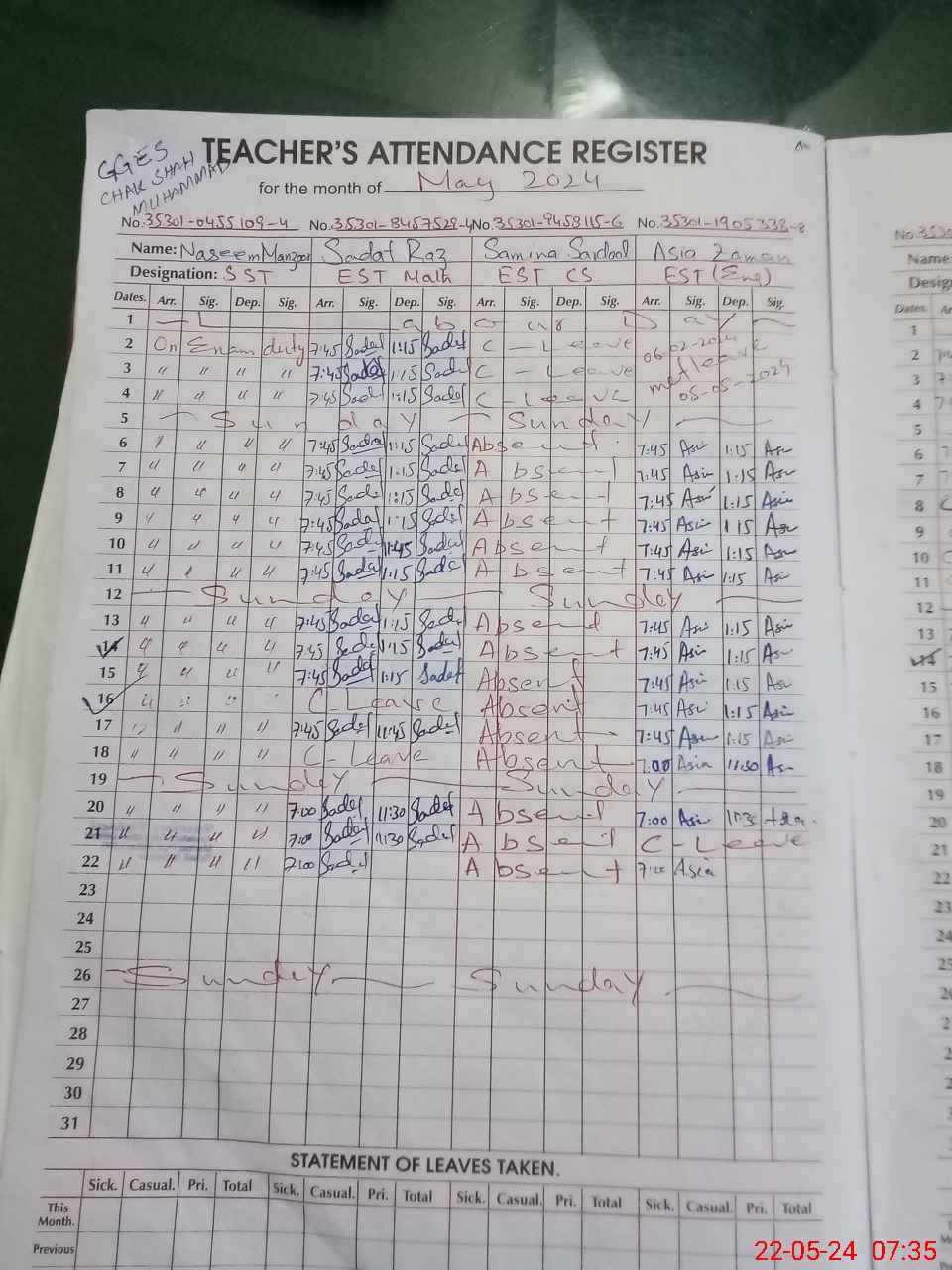 | 35**** | Sa**** Sa**** Hu**** | 1 | 9 | 0 | 0 | 0 | 0 | 0 | 0 | 0 | 9 | Absent (Un-Authorized) | |