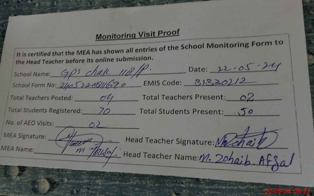 | EMIS Code: 31330212 | Name of School: GPS CHAK NO 118/P | |||