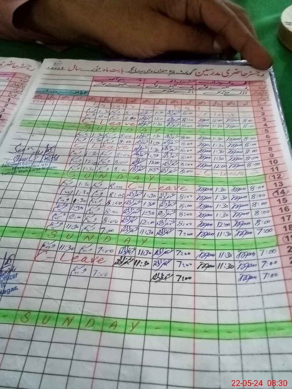 | CNIC | Full Name | Designation | R/C | Absence During Last Calender Month |