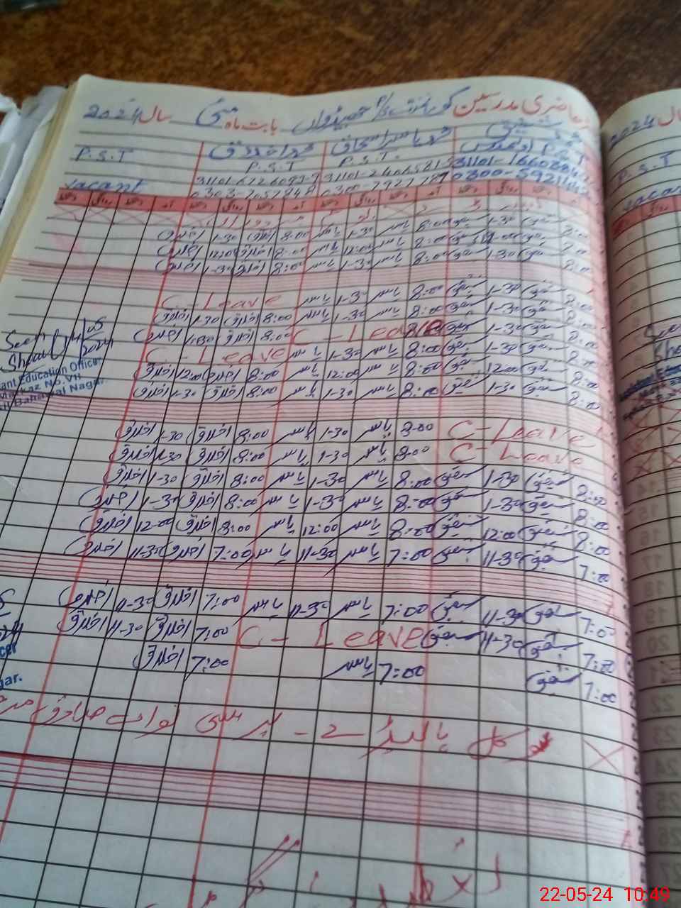 | CNIC | Full Name | Designation | R/C | Absence During Last Calender Month |