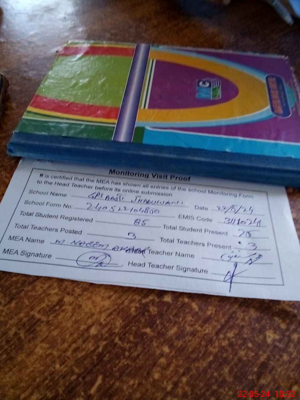 | Attendance Register | Head Teacher | MEA with School | Visit Proof |