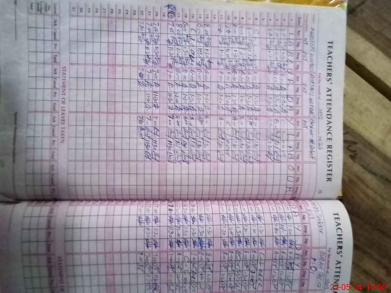 | Leave | Duty | Absent | Maternity | Medical | Ex- Pak |