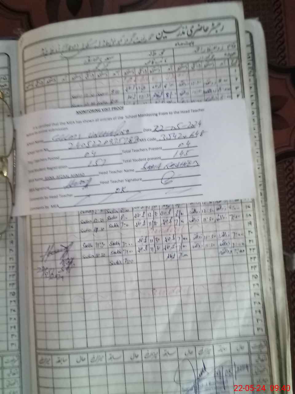| Attendance Register | Head Teacher | MEA with School | Visit Proof |