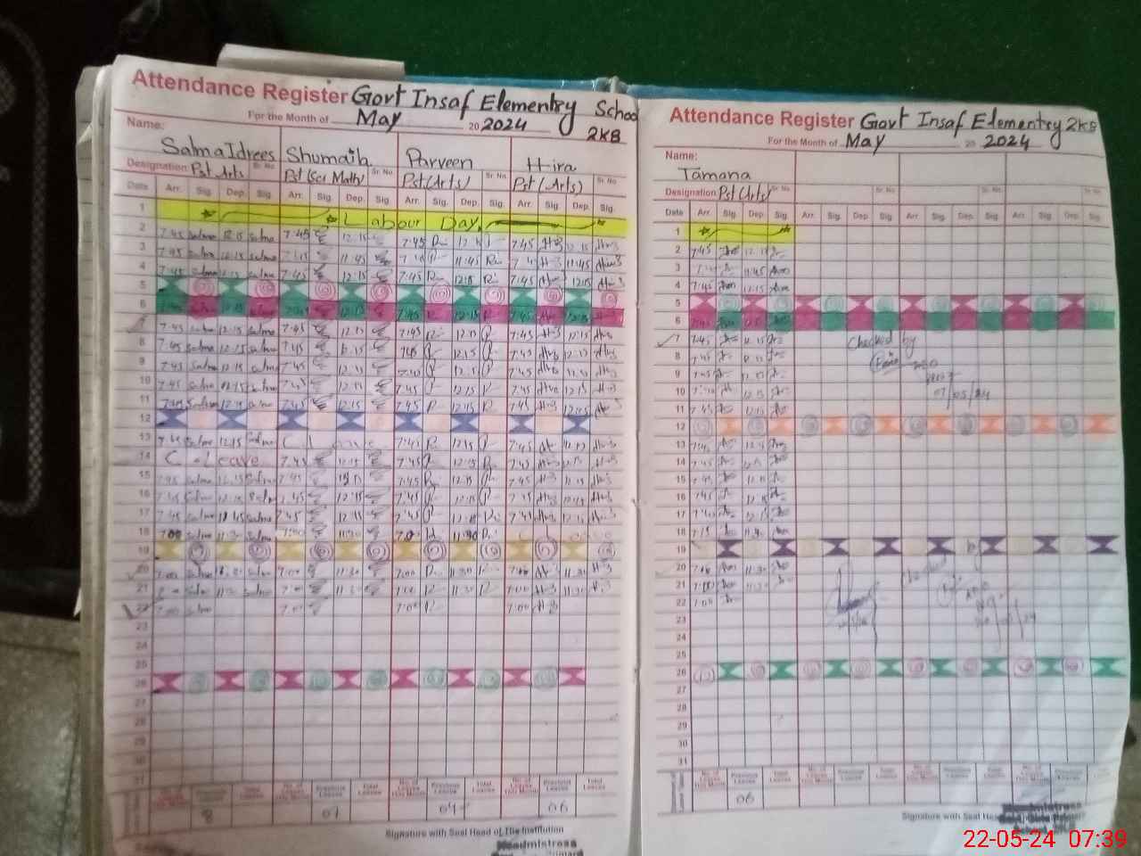 | No. of Students Present - Female | 0 | 0 | 22 | 25 | 27 | 24 | 22 | 16 | 136 | |||||||