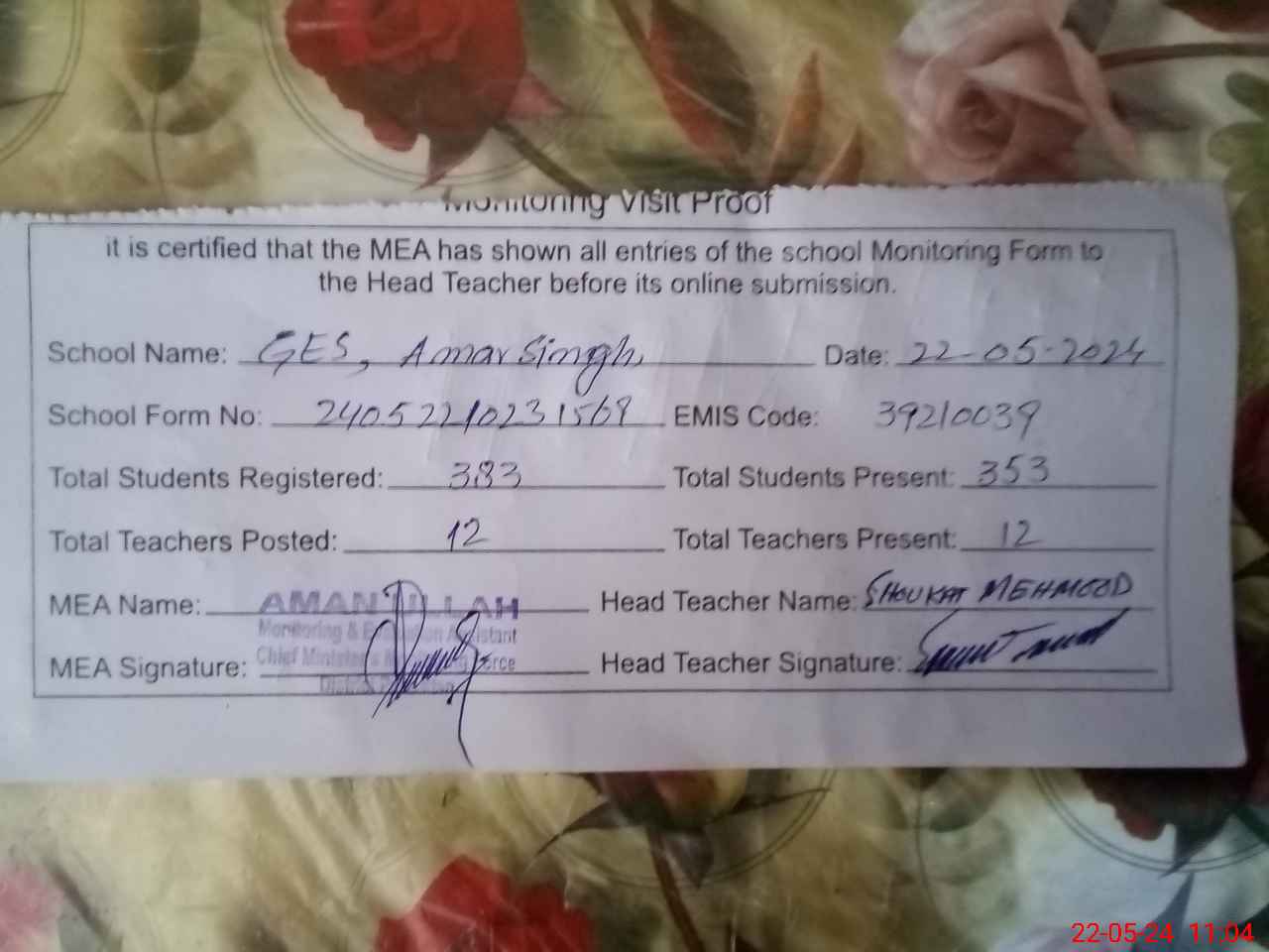 | EMIS Code: 39210039 | Name of School: GES AMAR SINGH DAKHLI SOCHAN | |||
