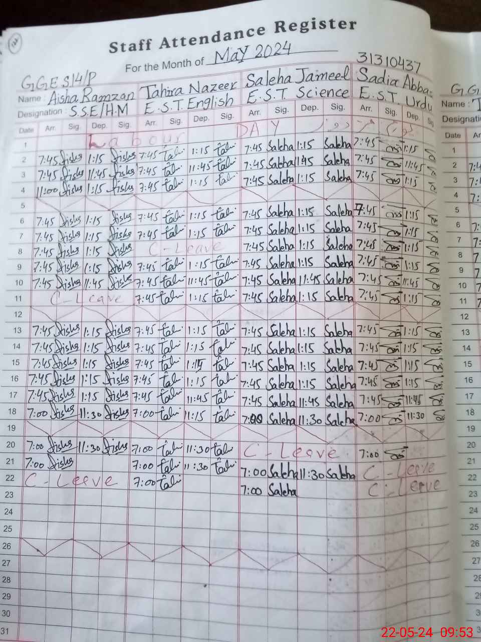 | 31**** | Mo**** Is**** | 1 | 30 | 0 | 0 | 30 | 0 | 0 | 0 | 0 | 0 | Maternity | |