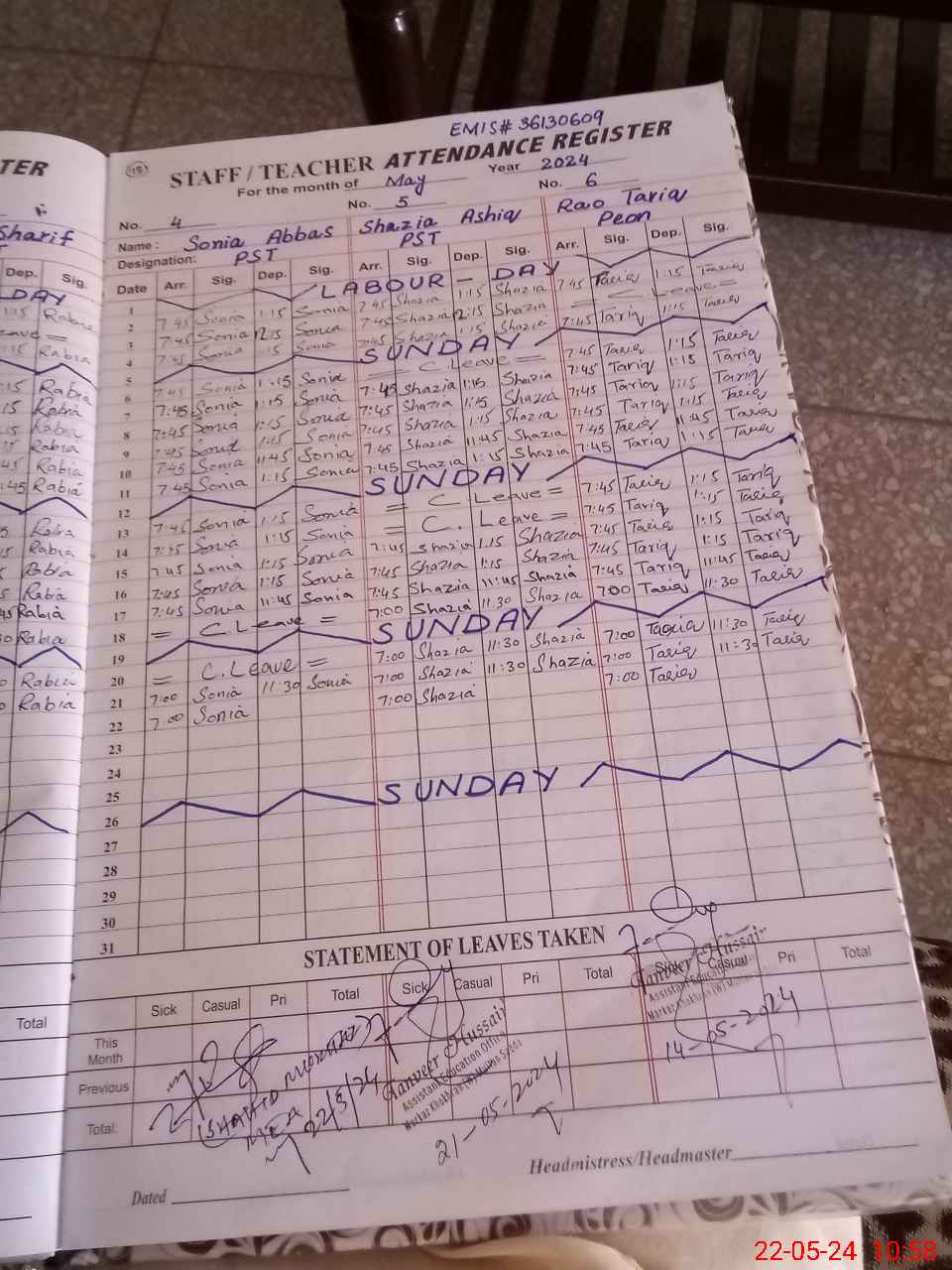 | CNIC | Full Name | Designation | R/C | Absence During Last Calender Month |