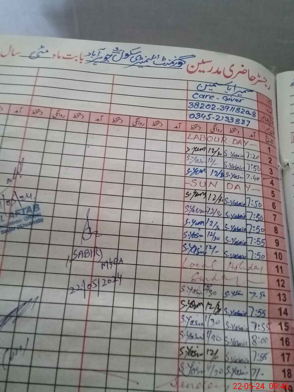 | Name: Am**** Al**** Kh**** Designation: (School Headmaster's/Headmistress's) Sst Phone/Cell Number: 03**** |