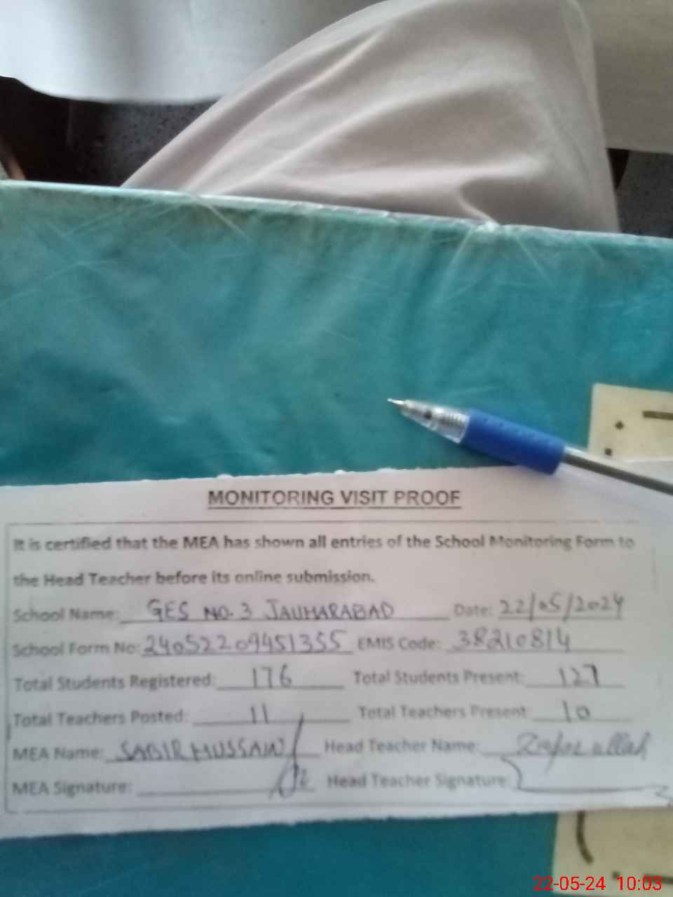 | EMIS Code: 38210814 | Name of School: GES NO. 3 JAUHARABAD | |||