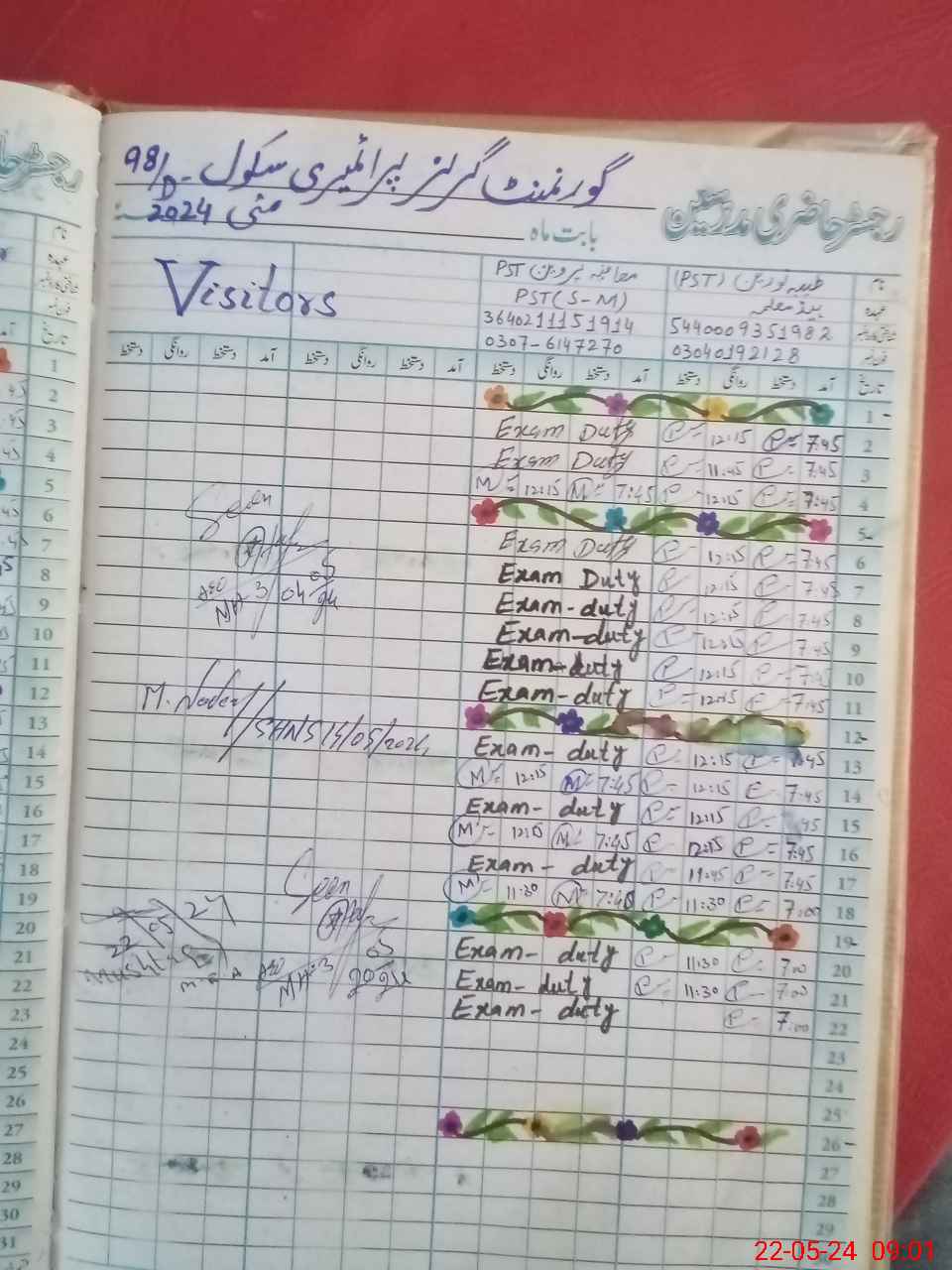 | 36**** | Mu**** Pa**** | PST | Regular | 0 | 0 | 0 | 0 | 0 | 0 | 0 | 0 | 0 | Exam Duty |