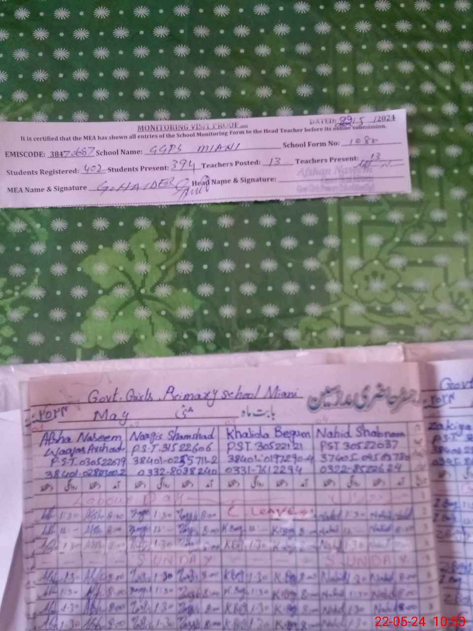 | Monitoring Date: 22-05-2024 | Start Time: 22-05-2024 10:30 AM | End Time: 22-05-2024 10:55 AM | Name of MEA: GH**** HA**** | |