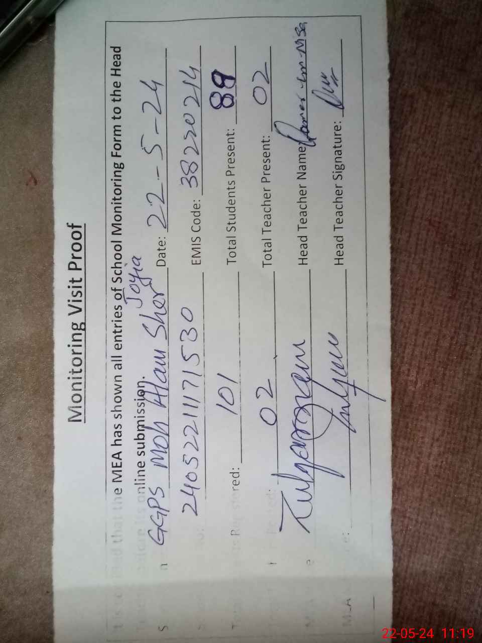 | EMIS Code: 38220214 | Name of School: GGPS MOHALLA ALAM SHER JOYIA | |||