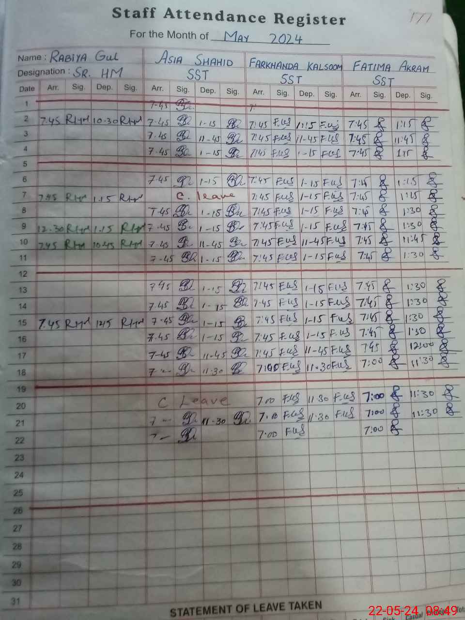 | 35**** | Ar**** Za**** | 1 | 1 | 0 | 0 | 0 | 0 | 0 | 0 | 0 | 0 | 0 | Absent (Un-Authorized) |