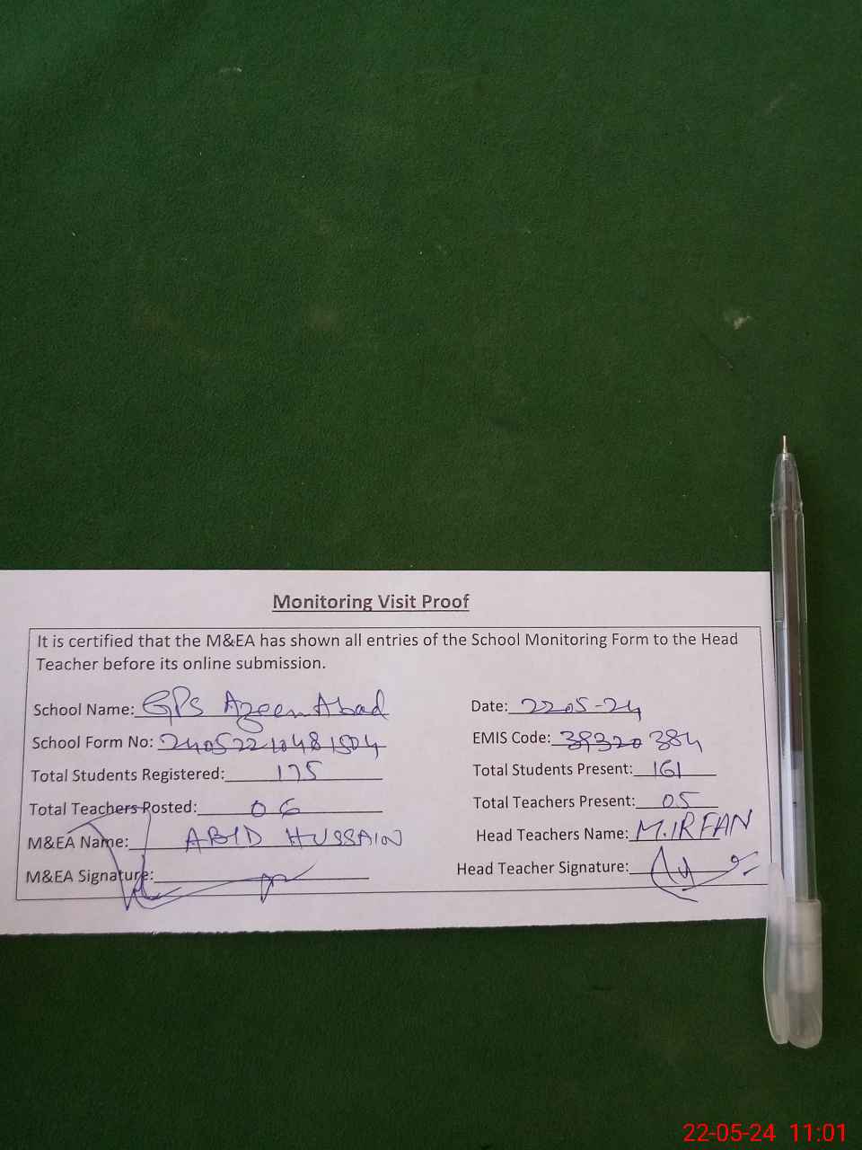 | EMIS Code: 39320384 | Name of School: GPS AZEEM ABAD , OKARA | |||