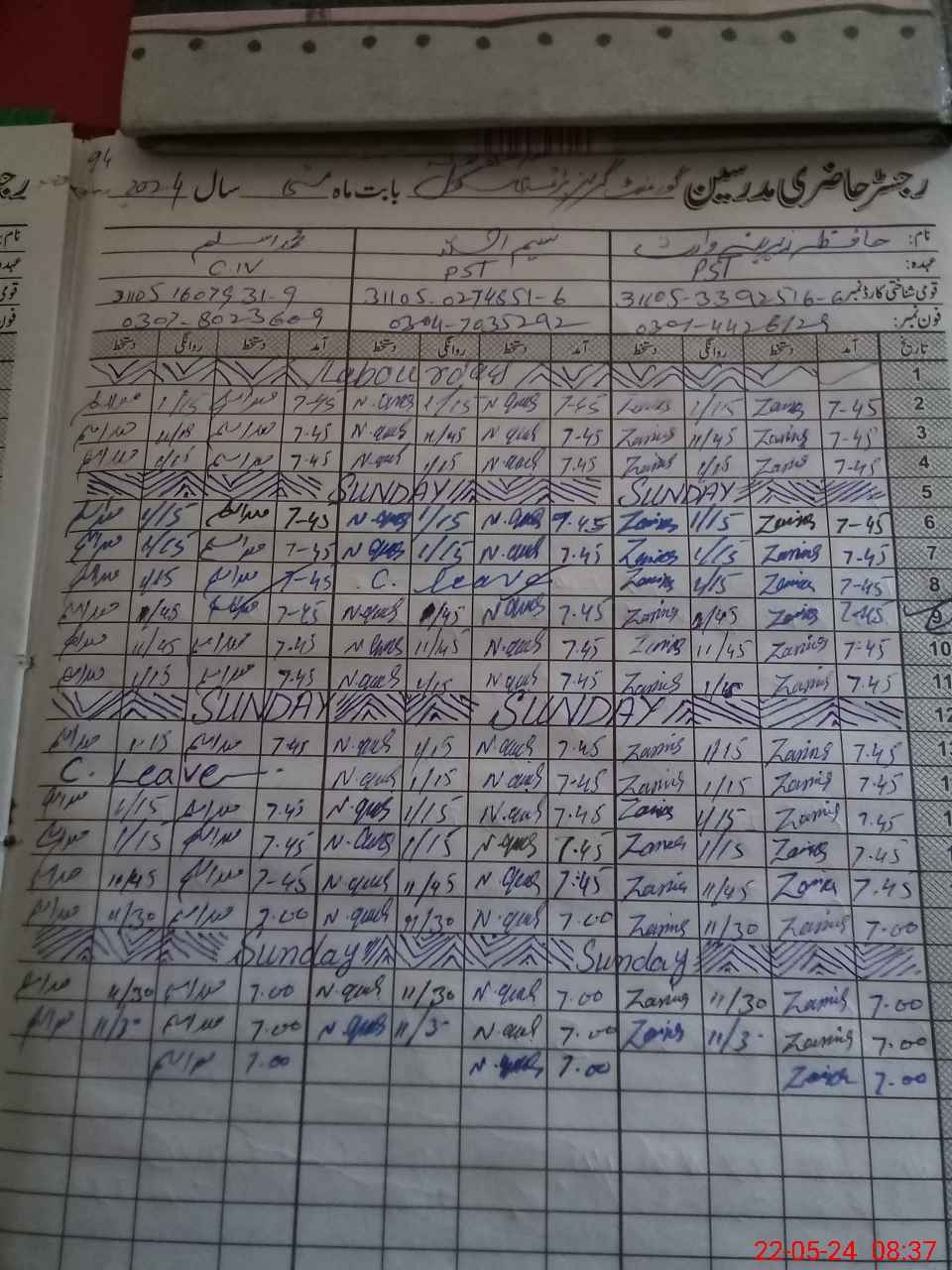 | Name: HA**** ZA**** WA**** Designation: (School Headmaster's/Headmistress's) PST Phone/Cell Number: 03**** |