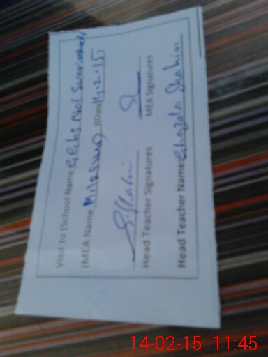 | Attendance Register | Head Teacher | MEA with School | Visit Proof |