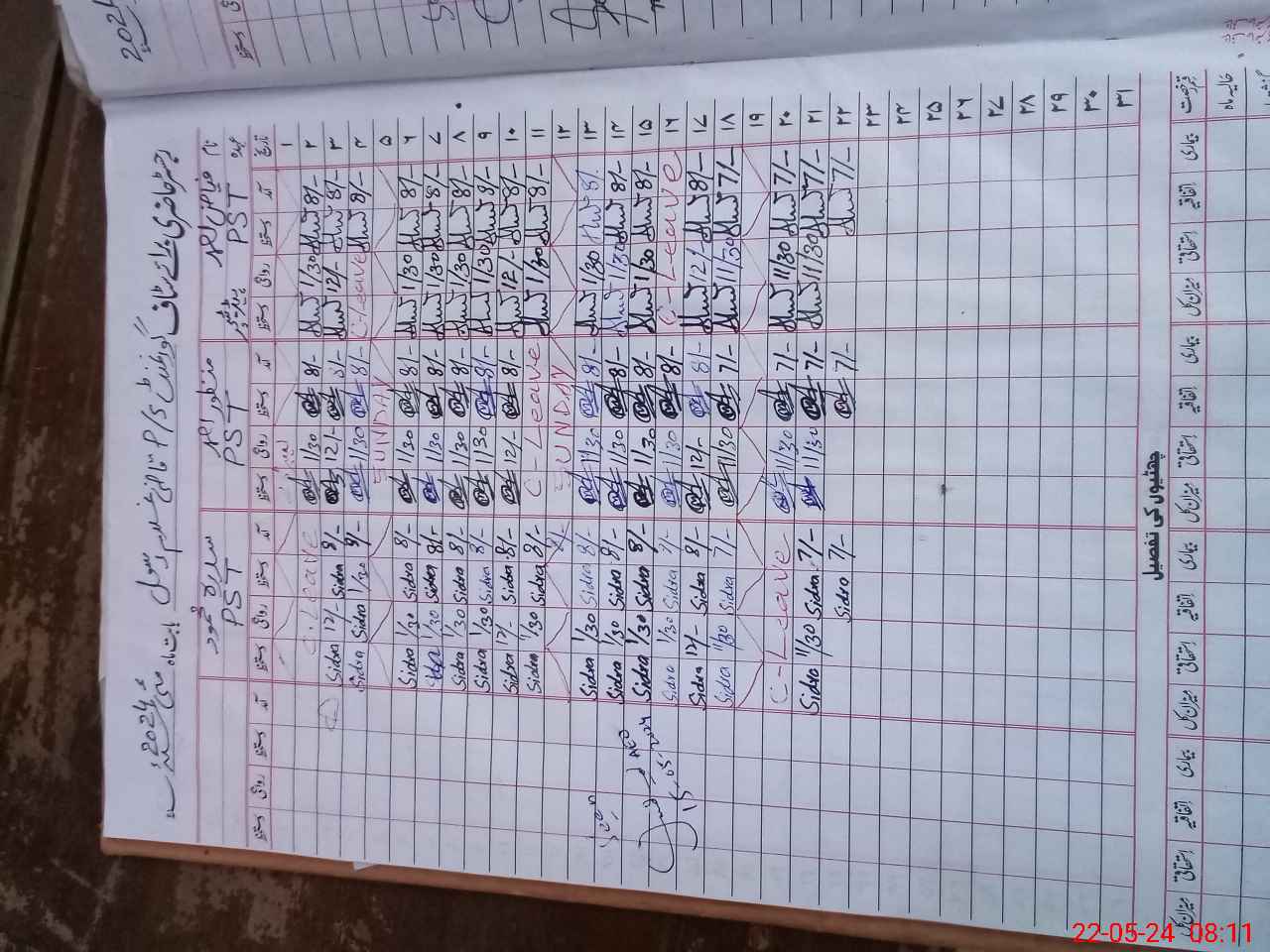 | CNIC | Full Name | Designation | R/C | Absence During Last Calender Month |
