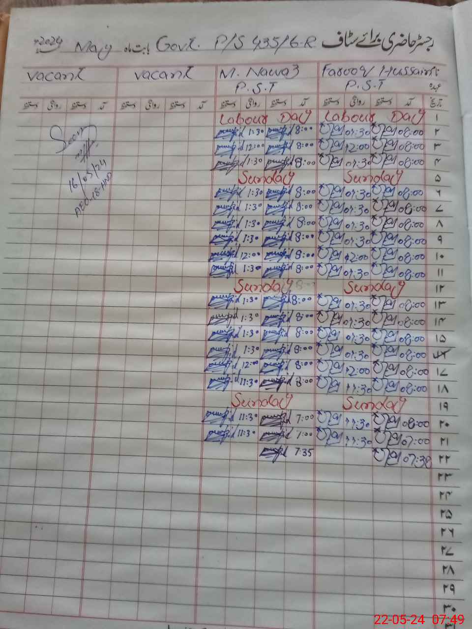 | CNIC | Full Name | Designation | R/C | Absence During Last Calender Month |