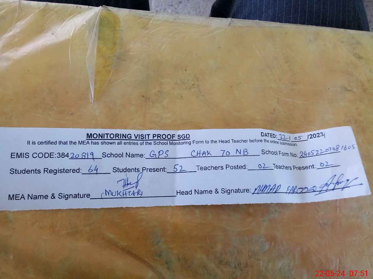 | EMIS Code: 38420819 | Name of School: GPS CHAK NO.70 NB | |||