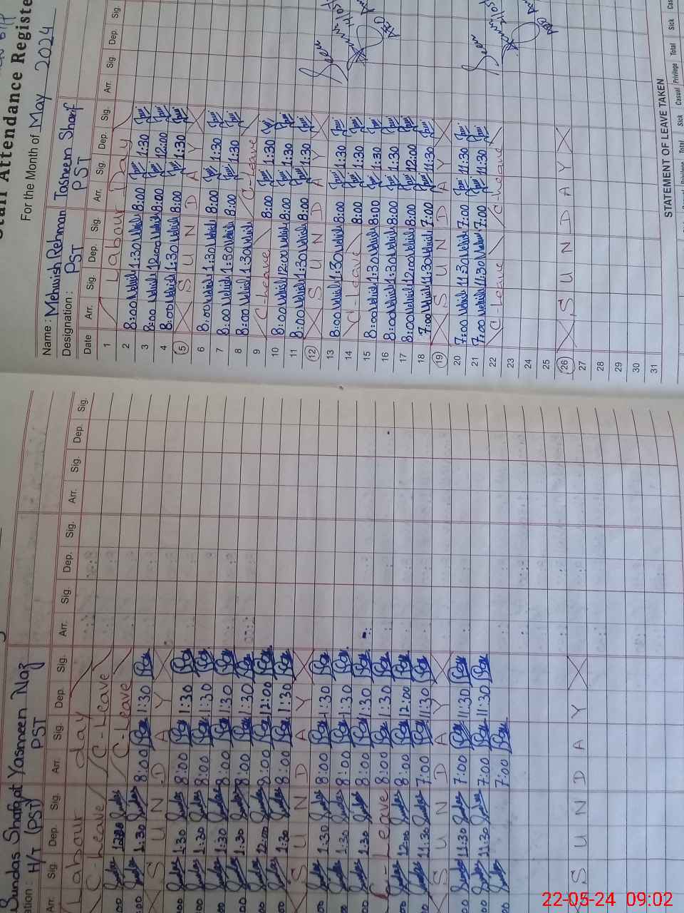 | CNIC | Full Name | Designation | R/C | Absence During Last Calender Month |