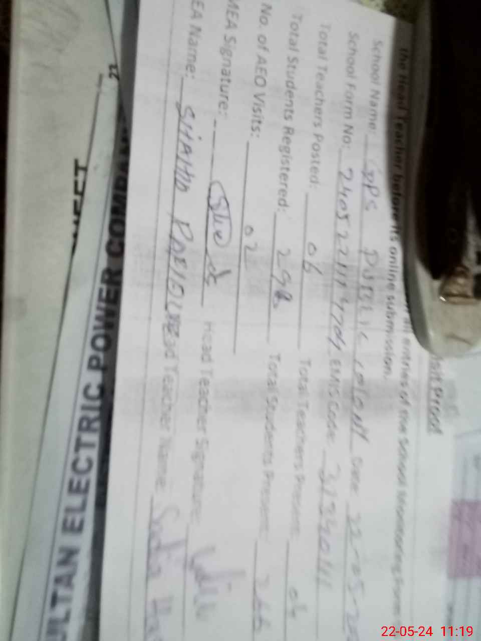 | Name: SH**** AH**** Designation: (School Headmaster's/Headmistress's) PST/PTC/JV Phone/Cell Number: 03**** |