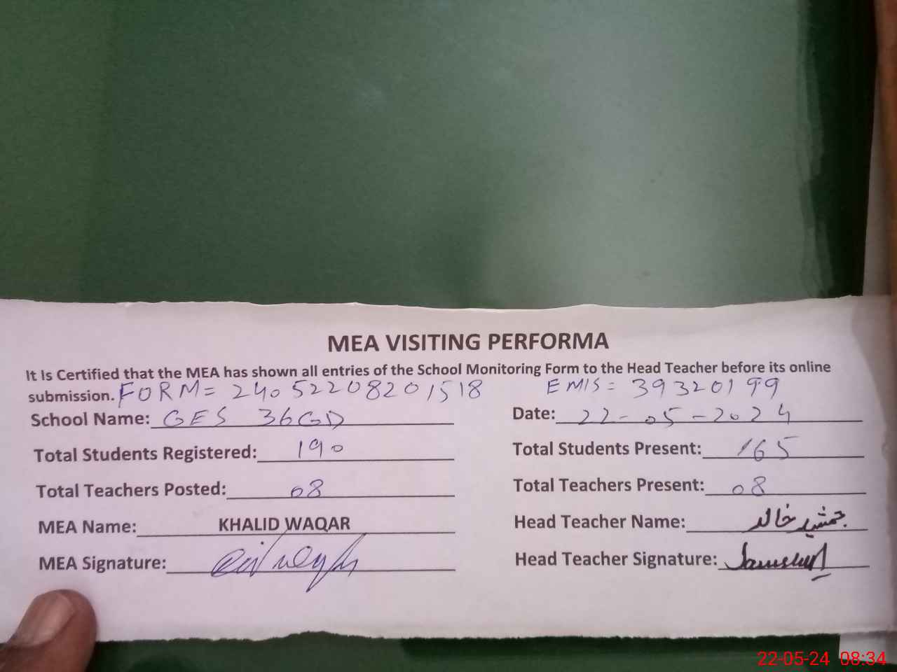 | Certified that this School was Inspected by the Undersigned MEA/DMO Today and the Information Stated Above is as Per Record. | |||||
