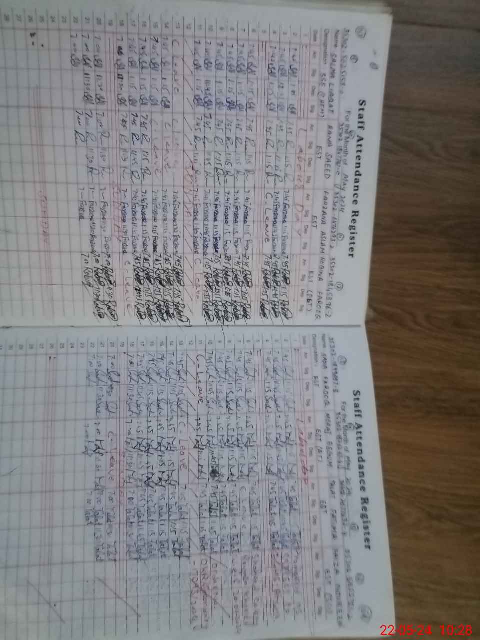 | CNIC | Full Name | Designation | R/C | Absence During Last Calender Month |
