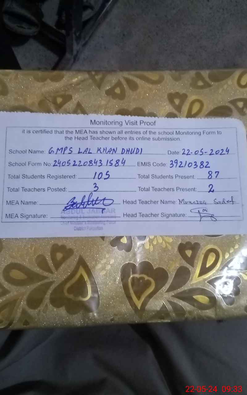 | EMIS Code: 39210382 | Name of School: GMPS LAL KHAN DHUDI | |||