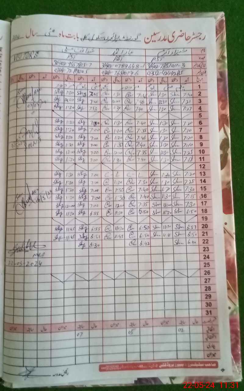 | Name: SH**** AK**** Designation: (School Headmaster's/Headmistress's) PST Phone/Cell Number: 03**** |