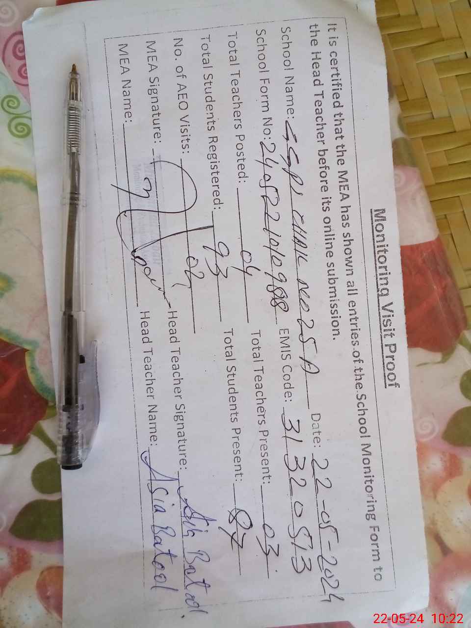 | Name: AS**** BA**** Designation: (School Headmaster's/Headmistress's) PST Phone/Cell Number: 03**** |