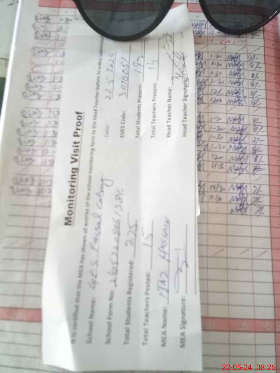 | Attendance Register | Head Teacher | MEA with School | Visit Proof |