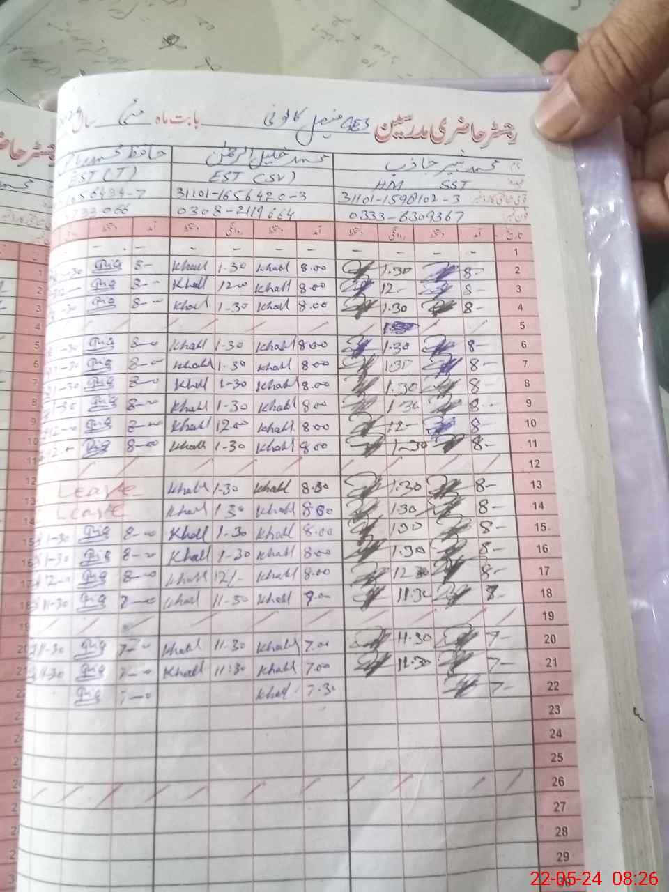 | CNIC | Full Name | Designation | R/C | Absence during last cal. month |
