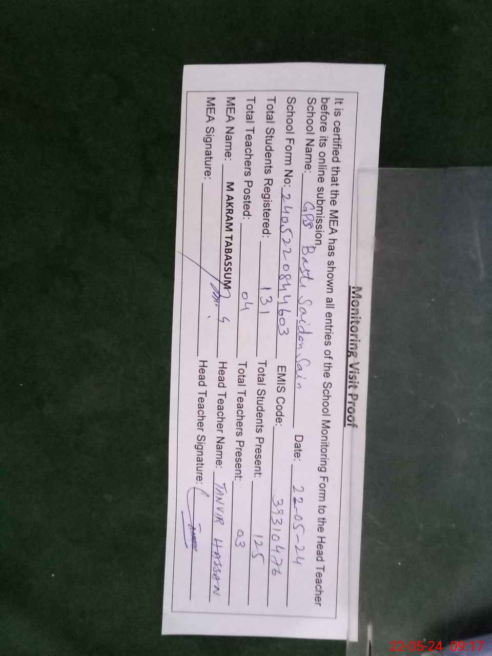 | EMIS Code: 39310476 | Name of School: GPS BASTI SADAN SAIN | |||