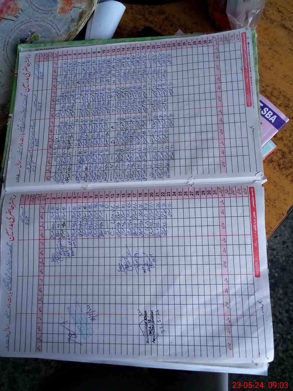 | CNIC | Full Name | Designation | R/C | Absence During Last Calender Month |