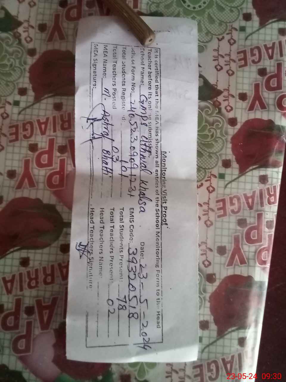 | EMIS Code: 39320518 | Name of School: GMPS UTHWAL KHALSA | |||