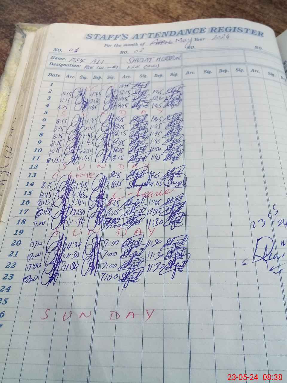 | CNIC | Full Name | Designation | R/C | Absence During Last Calender Month |