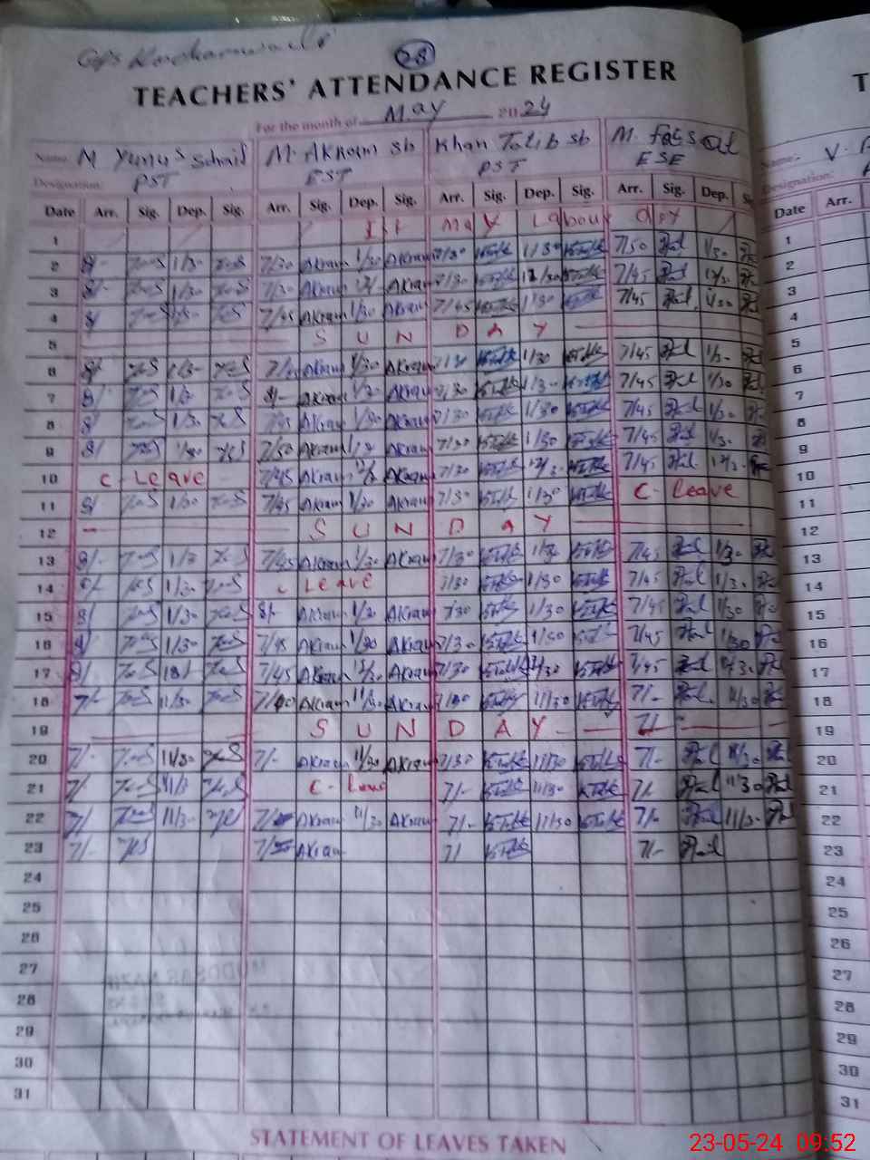 | CNIC | Full Name | Designation | R/C | Absence During Last Calender Month |