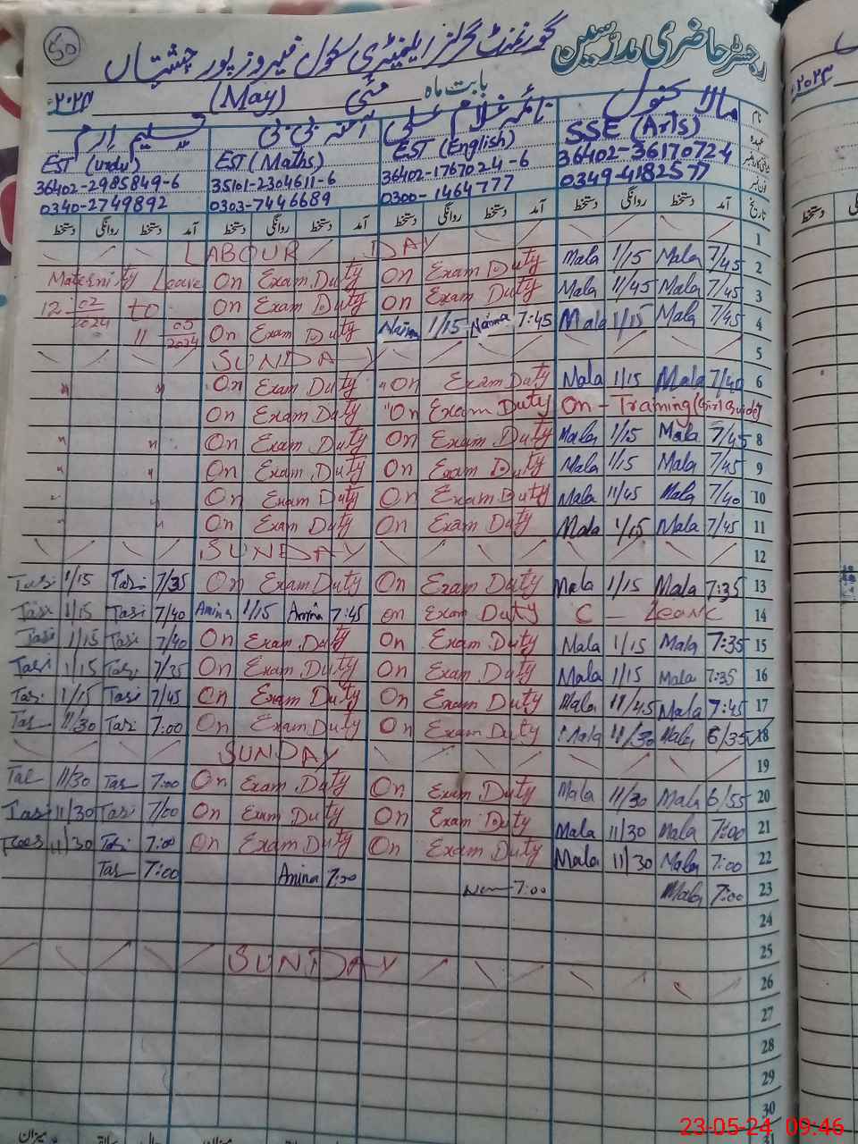 | Leave | Duty | Absent | Maternity | Medical | Ex- Pak |