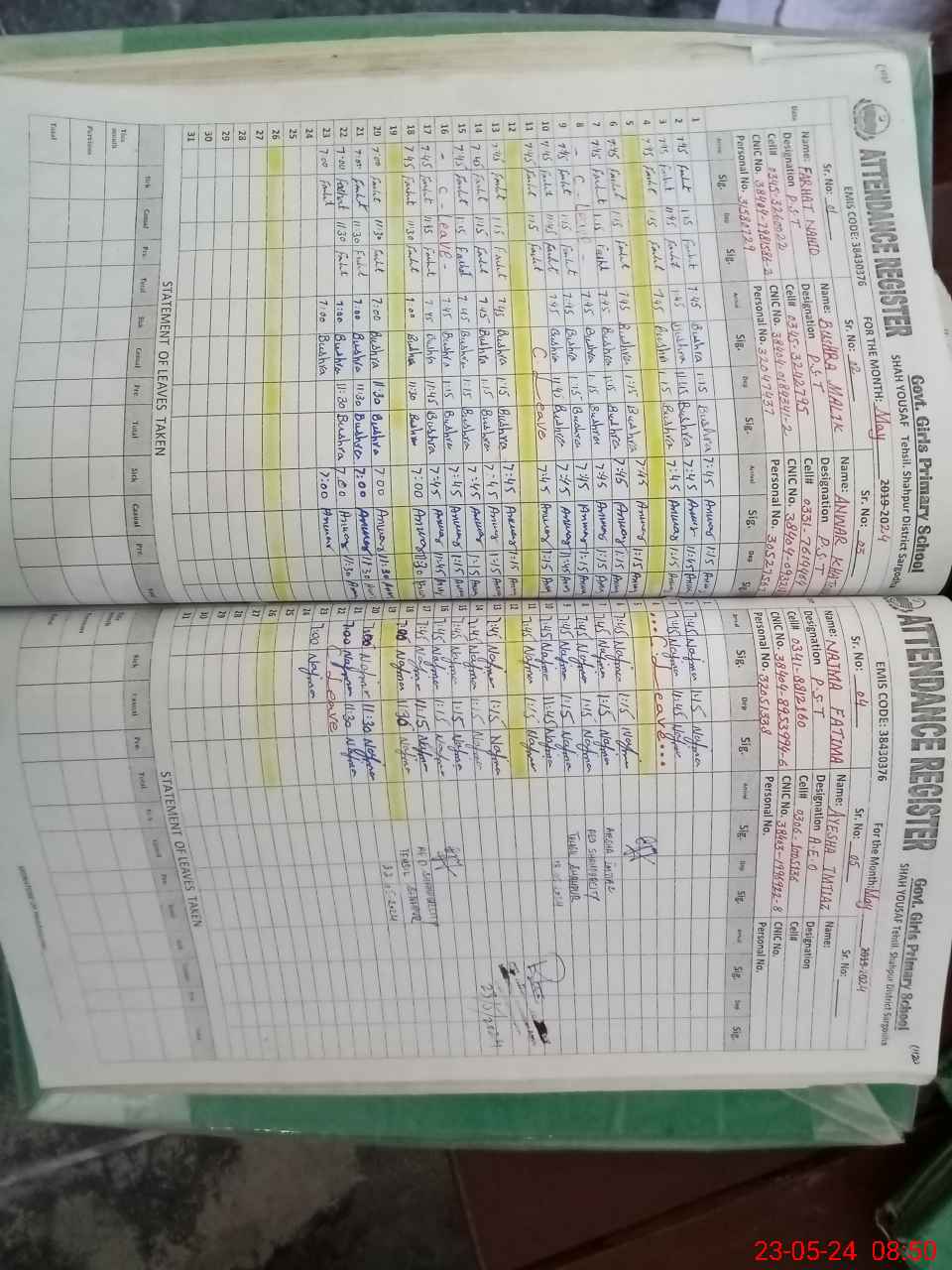 | CNIC | Full Name | Designation | R/C | Absence During Last Calender Month |