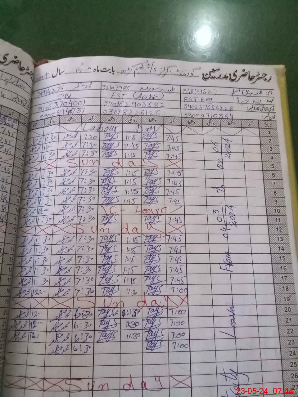 | CNIC | Full Name | Designation | R/C | Absence During Last Calender Month |