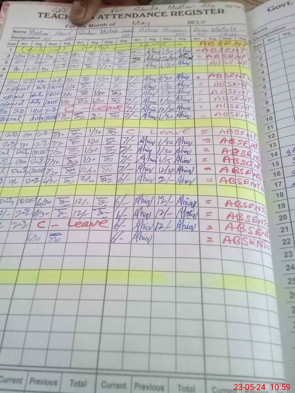 | 36**** | As**** Mu**** Ch**** | 1 | 1 | 0 | 0 | 0 | 0 | 0 | 0 | 0 | 0 | 0 | Absent (Un-Authorized) |