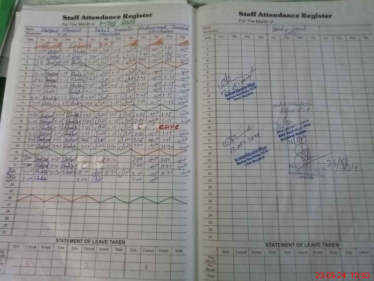 | CNIC | Full Name | Designation | R/C | Absence During Last Calender Month |