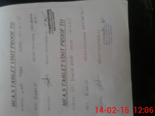 | Attendance Register | Head Teacher | MEA with School | Visit Proof |