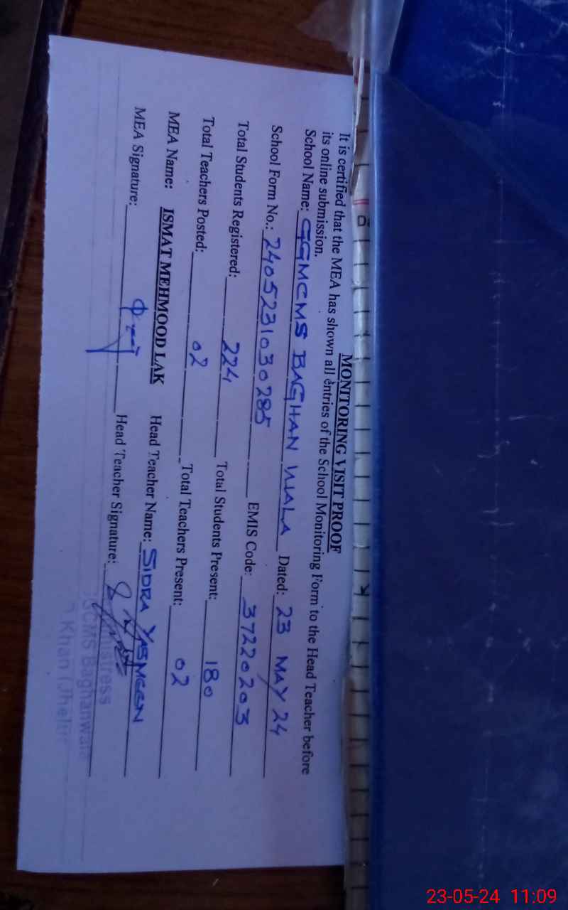 | EMIS Code: 37220203 | Name of School: GGMCMS BAGHAN WALA | |||