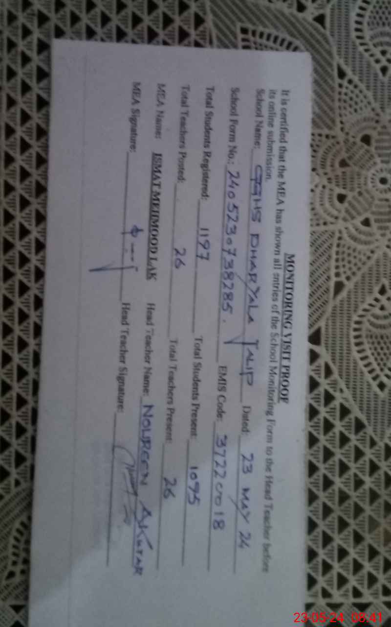 | EMIS Code: 37220018 | Name of School: GGHS DHARIALA JALIB | |||